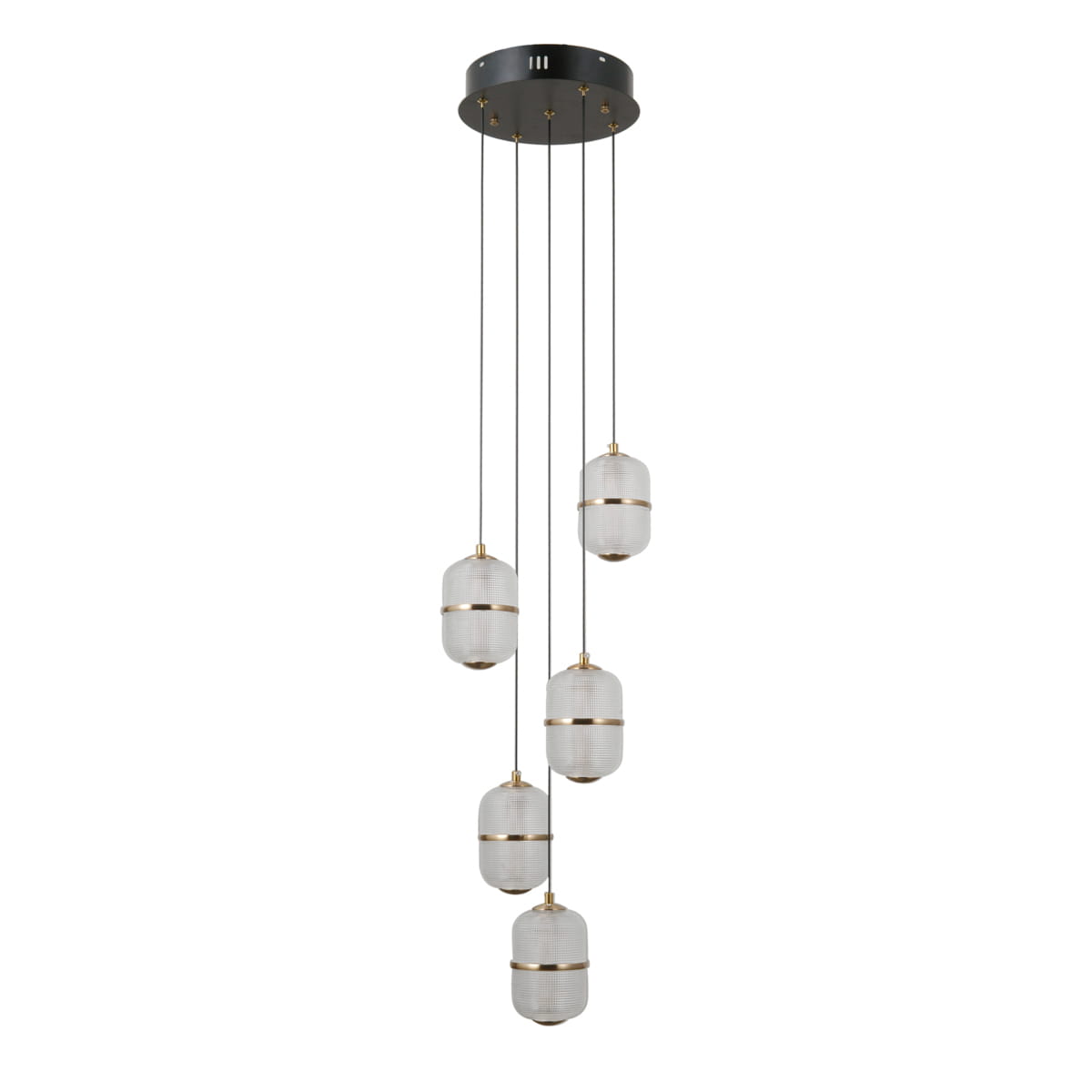 ALANI czarno-złota lampa wisząca klosze szkło siatkowane LED 5x6W 3000K PND-34375-5-BK