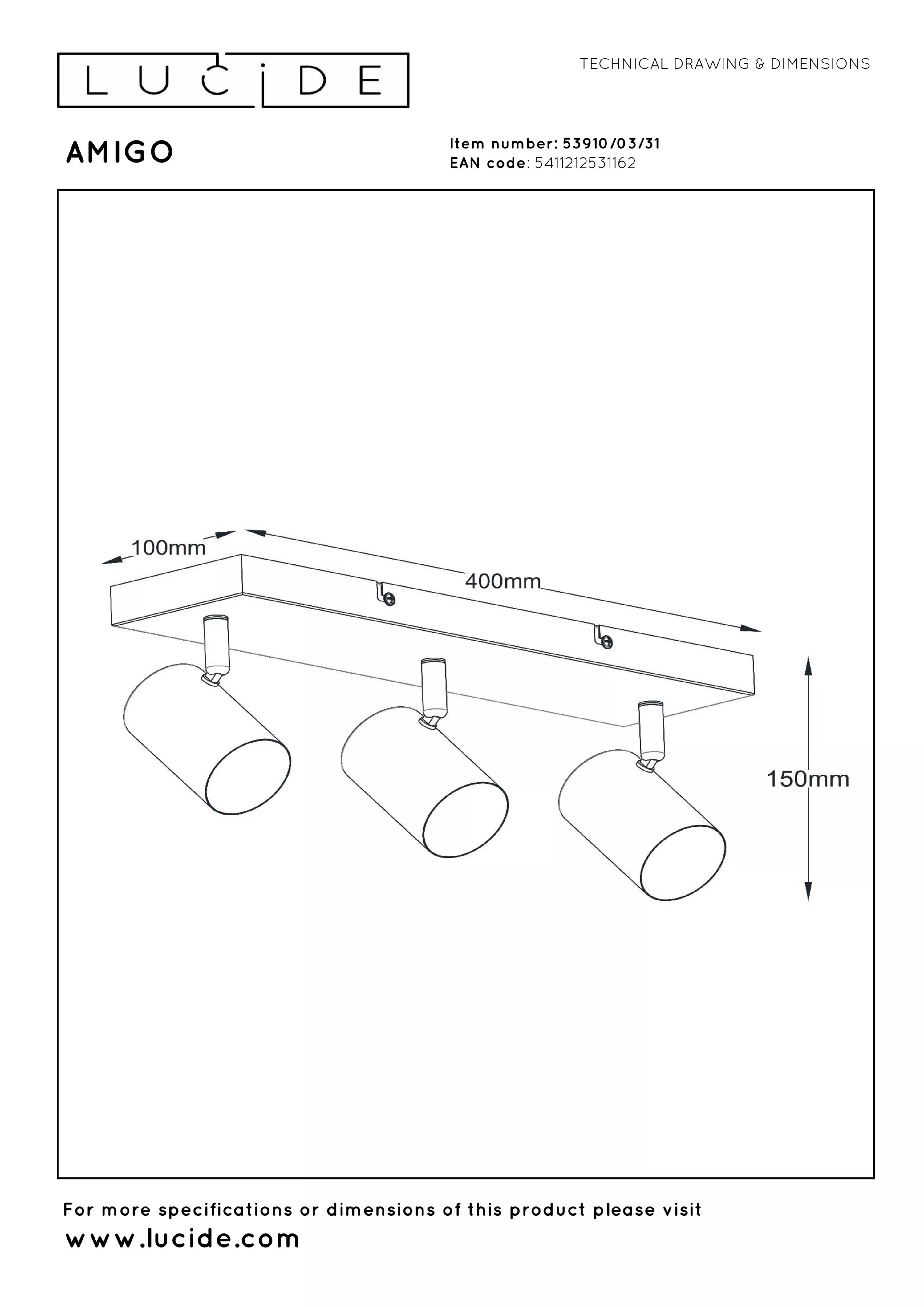 AMIGO spoty czarne regulowane na listwie 3xGU10 LUCIDE 53910/03/31
