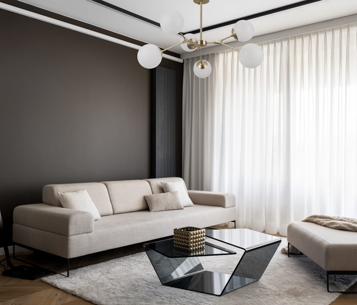 - Stylowy wygląd: Złożony z sześciu mlecznych kloszy i eleganckiego brązowego metalu, daje wnętrzu nowoczesny i minimalistyczny wygląd