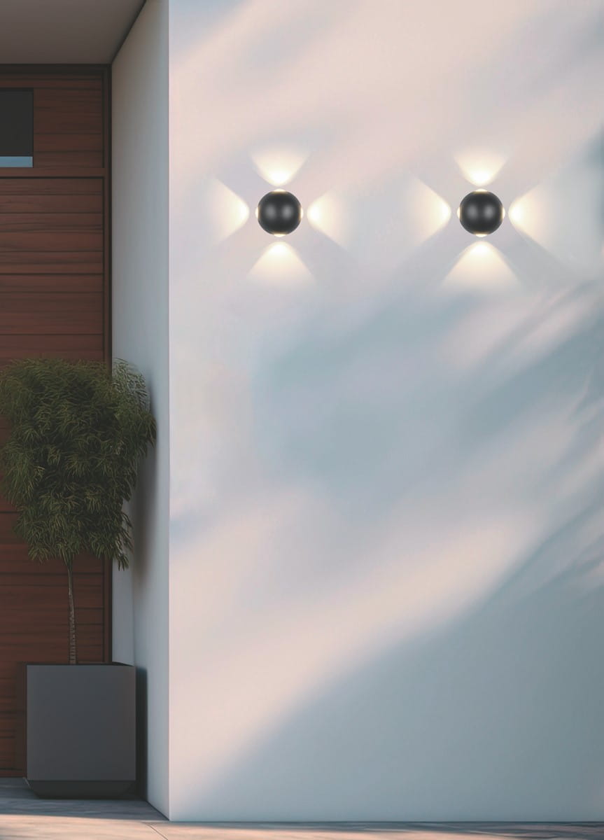 AVISIO 246760432kinkiet zewnętrzny kulka fi 10cm LED 4x2W IP54 czarny mat światło dekoracyjne góra dół i na boki