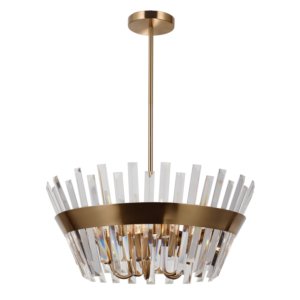 Wysokość i elegancja tej lampy wiszącej sprawiają, że idealnie wpasuje się w nowoczesne wnętrza, dodając im luksusu i subtelnej elegancji. Cechuje ją delikatny, kryształowy abażur, który odbija światło w sposób, który przynosi wnętrzu atmosferę rafinowanej elegancji — idealnie pasuje do salonów, jadalni czy korytarzy, gdzie chcesz podkreślić styl i charakter przestrzeni.