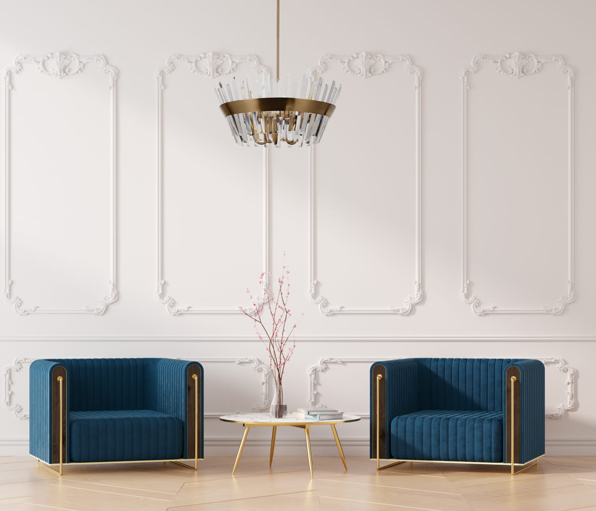 - Kryształowy abażur: tworzy efektowne oświetlenie, rozpraszając światło w sposób, który podkreśla rafinowanie wnętrza