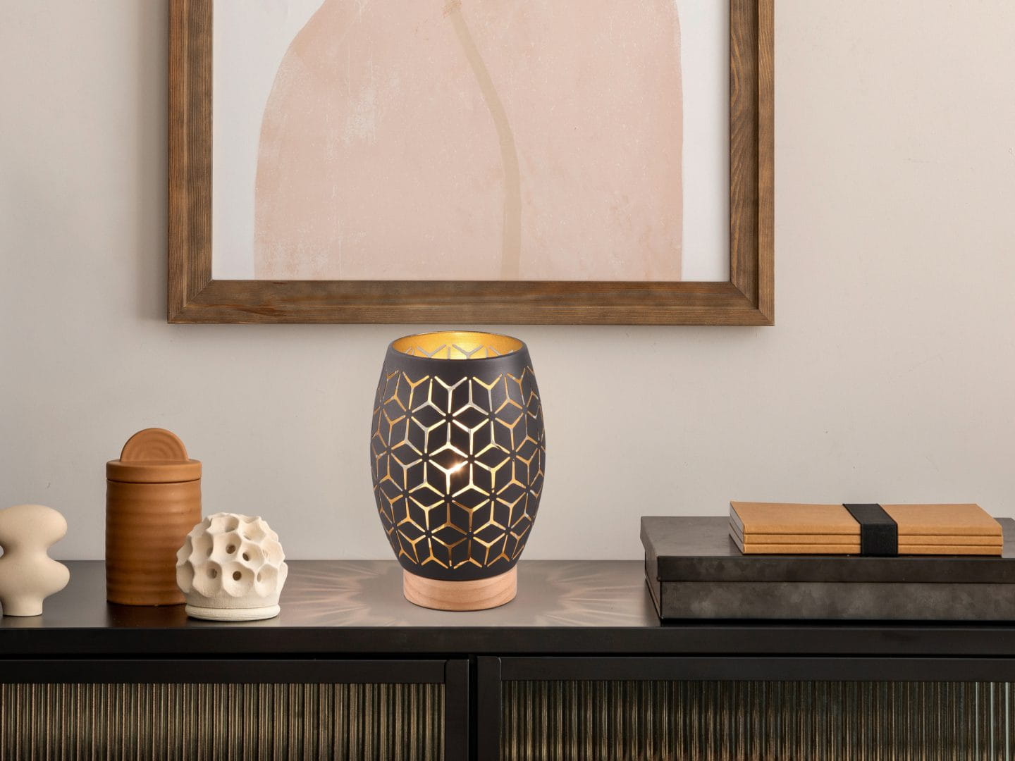 BIDAR R51571080 lampa nocna abażur metalowy czarno-złoty z wyciętym wzorem 1xE27
