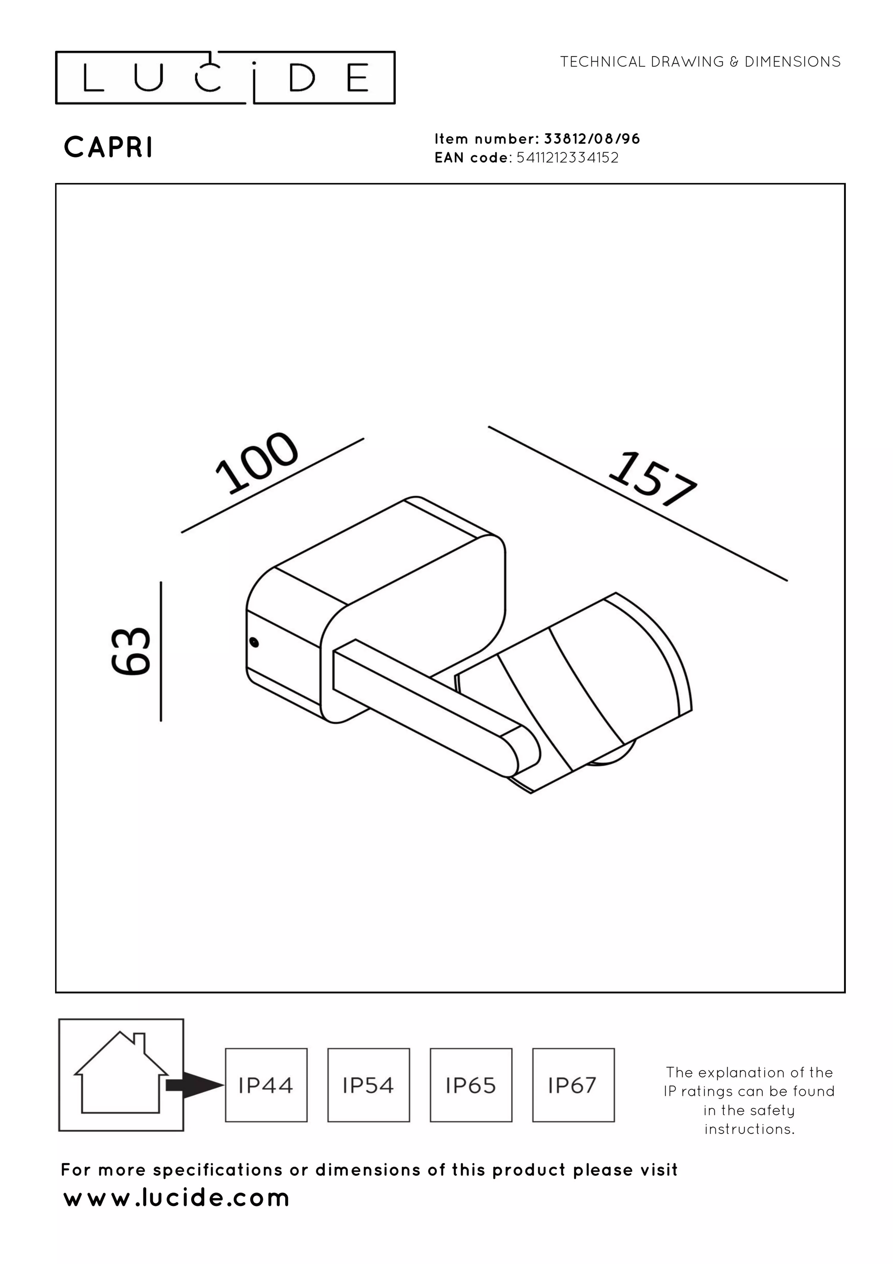 CAPRI lampa elewacyjna kawowa brązowa IP54 LED 8W 2700K regulowana LUCIDE 33812/08/96
