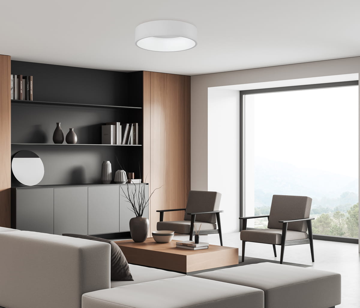 Nowoczesna lampa sufitowa w minimalistycznym designie stwarza atmosferę spokoju i elegancji, idealnie wpisując się w wnętrza o koncepcji skandynawskiej lub nowoczesnej. Jej delikatne, rozproszone światło tworzy przytulny klimat w salonie, sypialni lub jadalni, podkreślając naturalne materiały i czyste linie mebli. Zdajcie sobie sprawę – to nie tylko źródło światła, ale element dekoracyjny, który podnosi estetykę każdego pomieszczenia.
