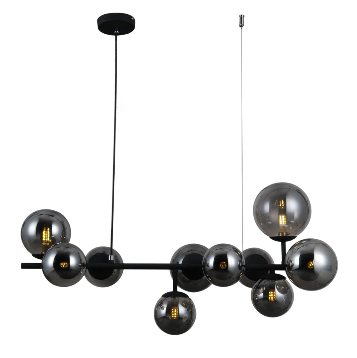 FRONTERA lampa wisząca czarna klosze dymione różne rozmiary 10xG9 PND-40423-10