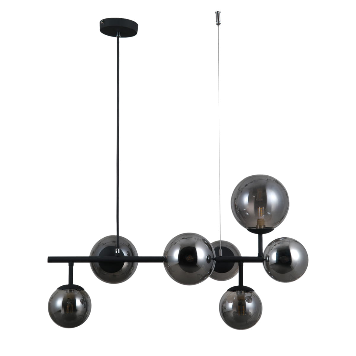 FRONTERA lampa wisząca czarna klosze dymione różne rozmiary 7xG9 PND-40423-7