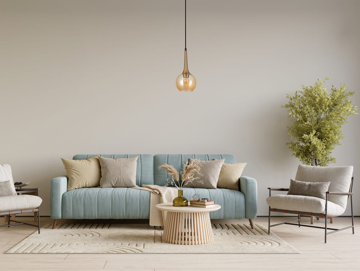 Wyróżniająca się w stylu nowoczesnym, lampa wisząca z bursztynowym kloszem dodaje wnętrzu ciepła i elegancji, idealnie pasując do salonów, sypialni lub biur. Jej minimalistyczny design i delikatne oświetlenie tworzą przytulną, relaksującą atmosferę, podkreślając wnętrze jakby sztucznym światłem, które podkreśla jego estetykę i funkcjonalność.