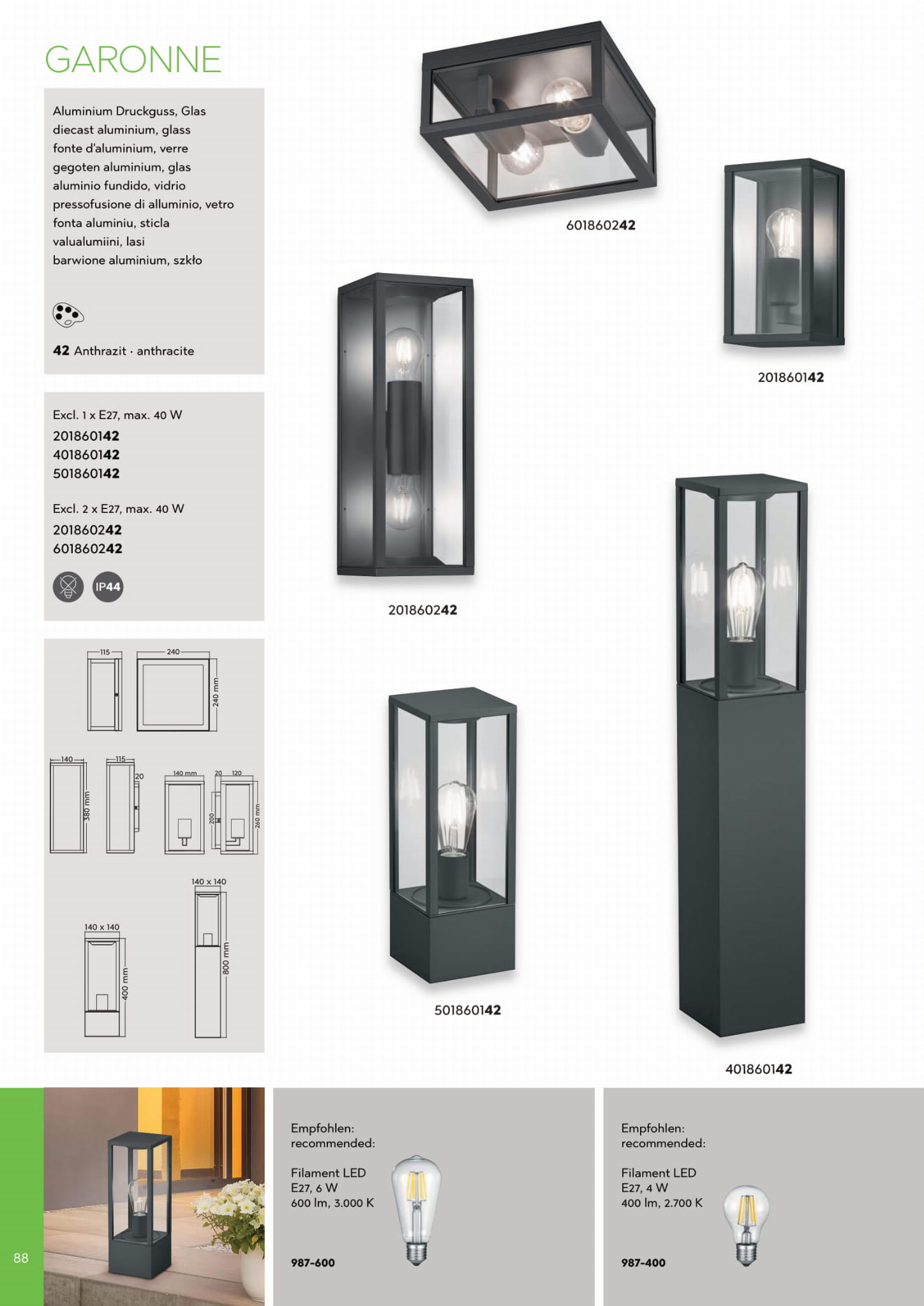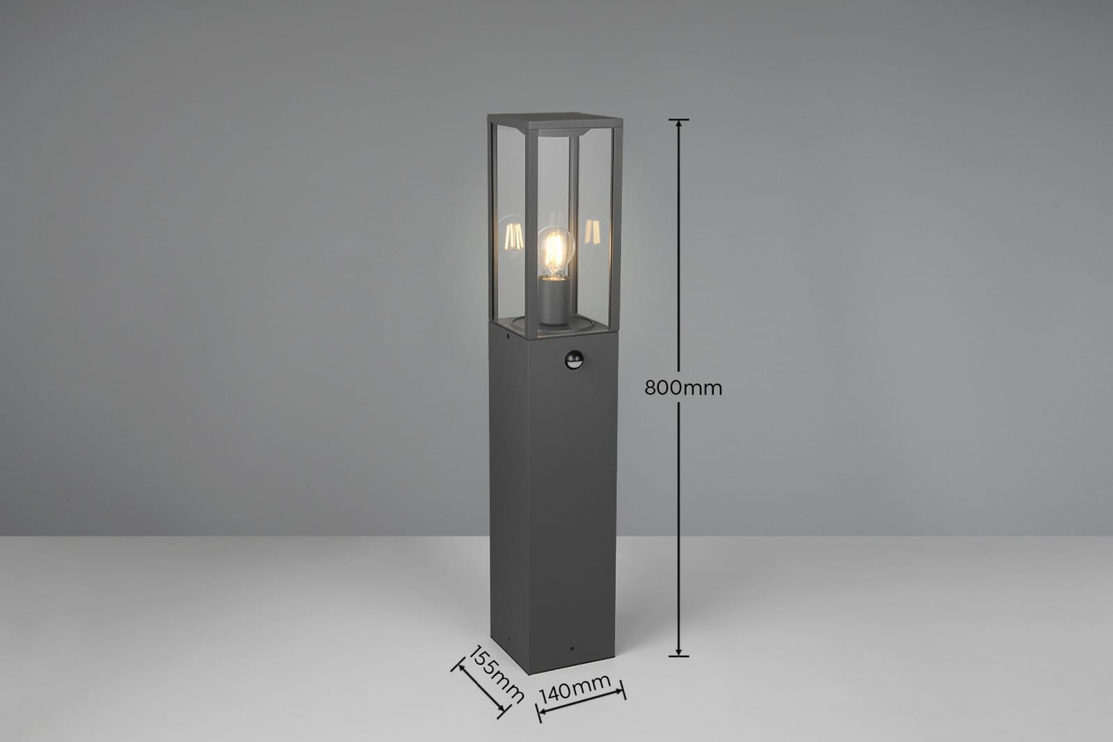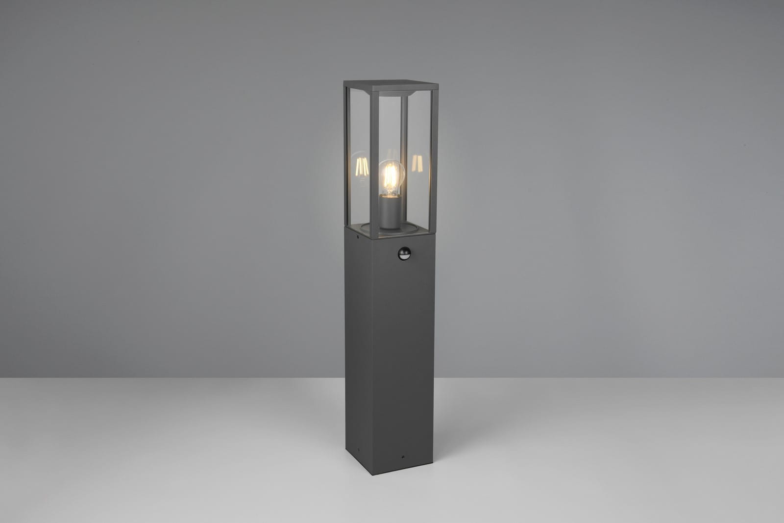 GARONNE słupek ogrodowy z czujnikiem ruchu 80cm antracyt klosz szklany 1xE27 IP44 TRIO 401869142