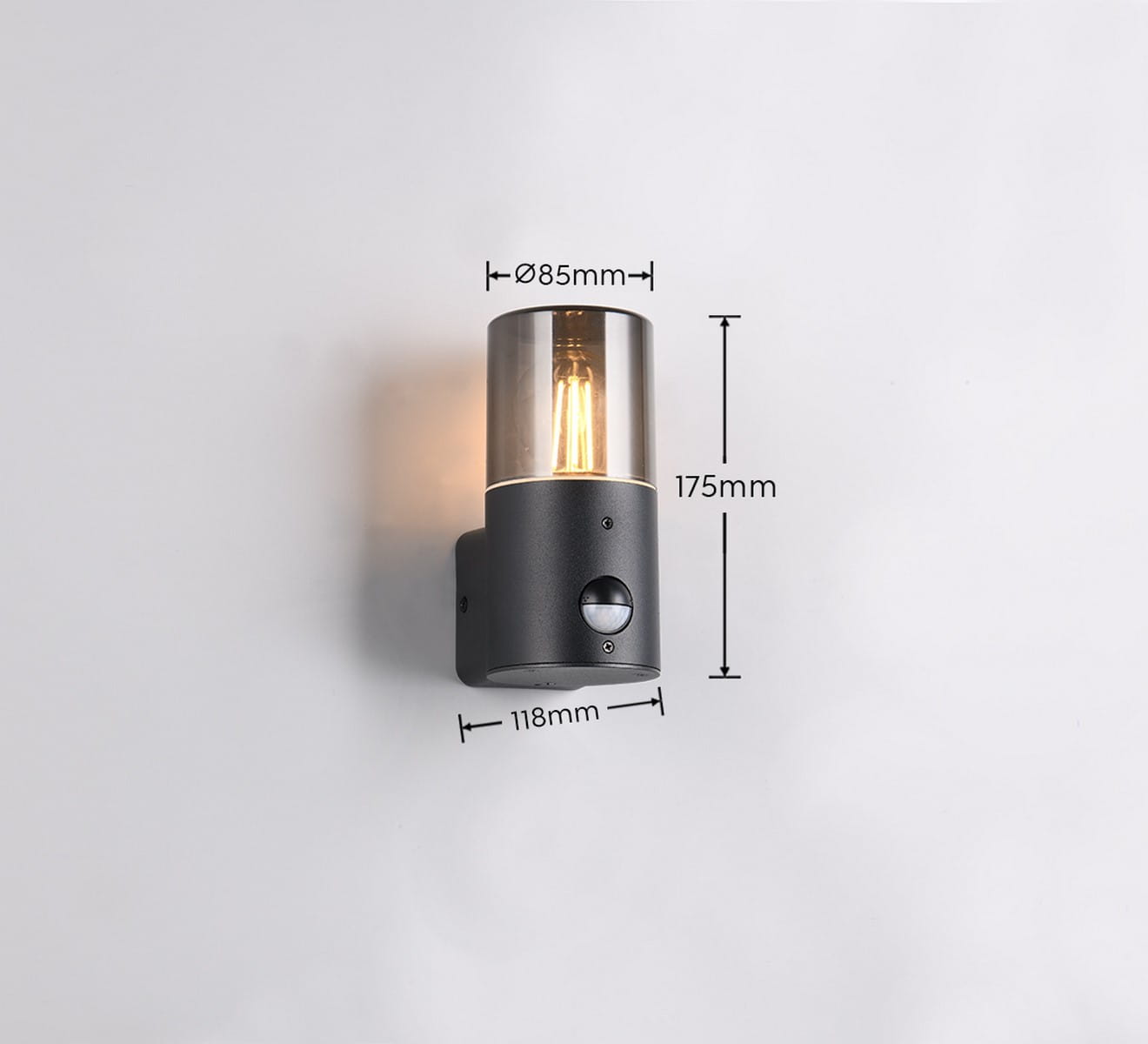 HOOSIC 222260132 kinkiet elewacyjny jednostronny z czujnikiem ruchu czarny klosz dymiony 1xE27 IP44