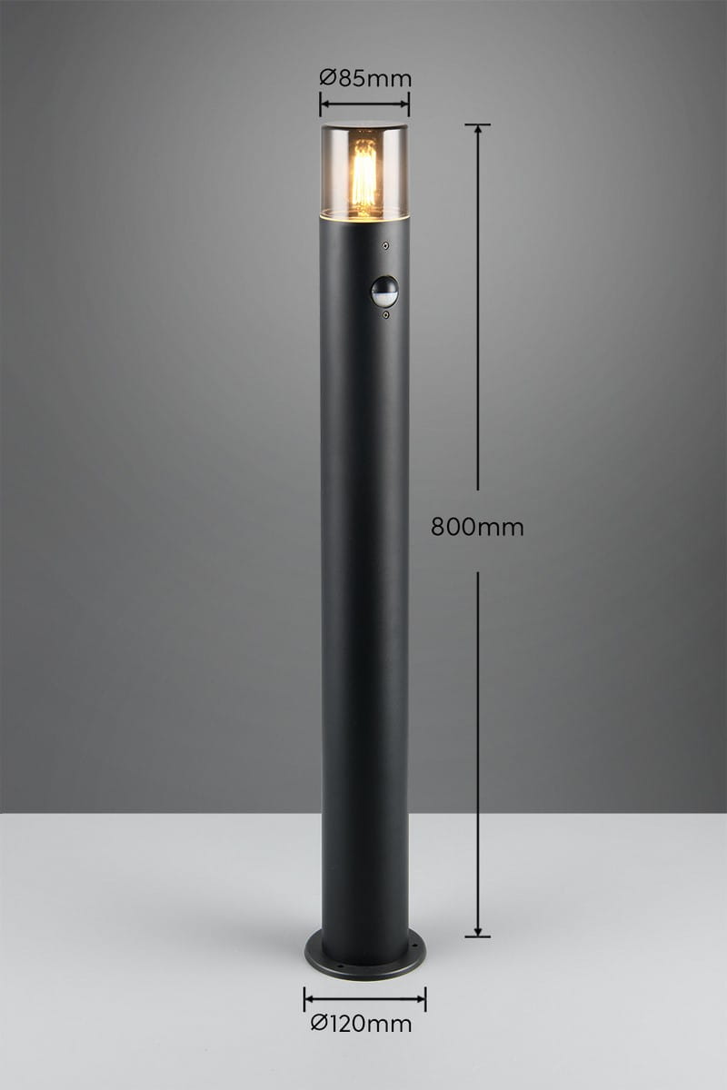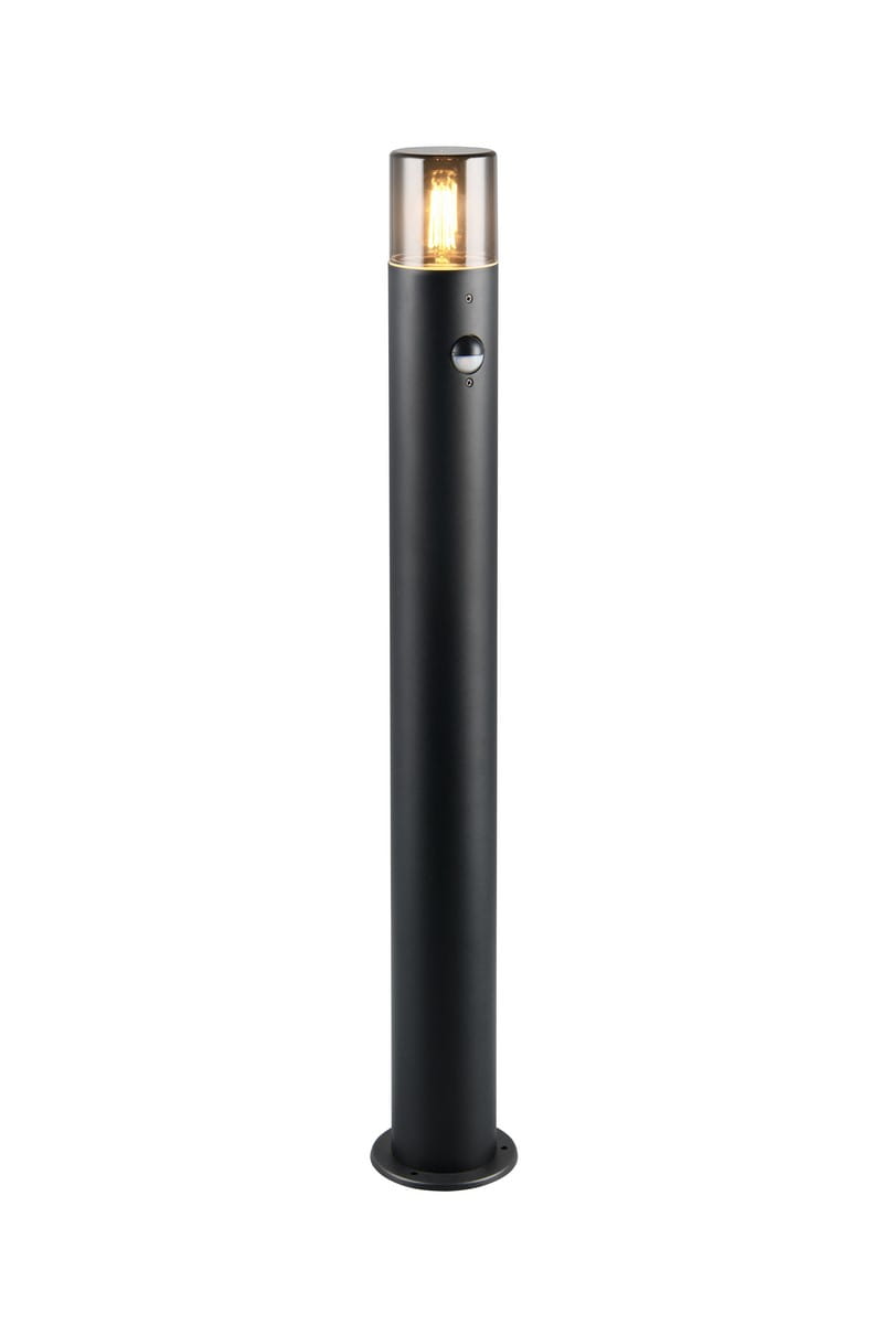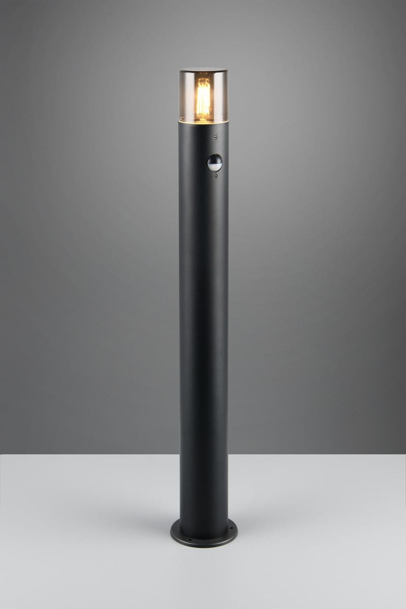 HOOSIC 422260132 lampa stojąca zewnętrzna 80cm z czujnikiem ruchu czarna klosz dymiony 1xE27 IP44