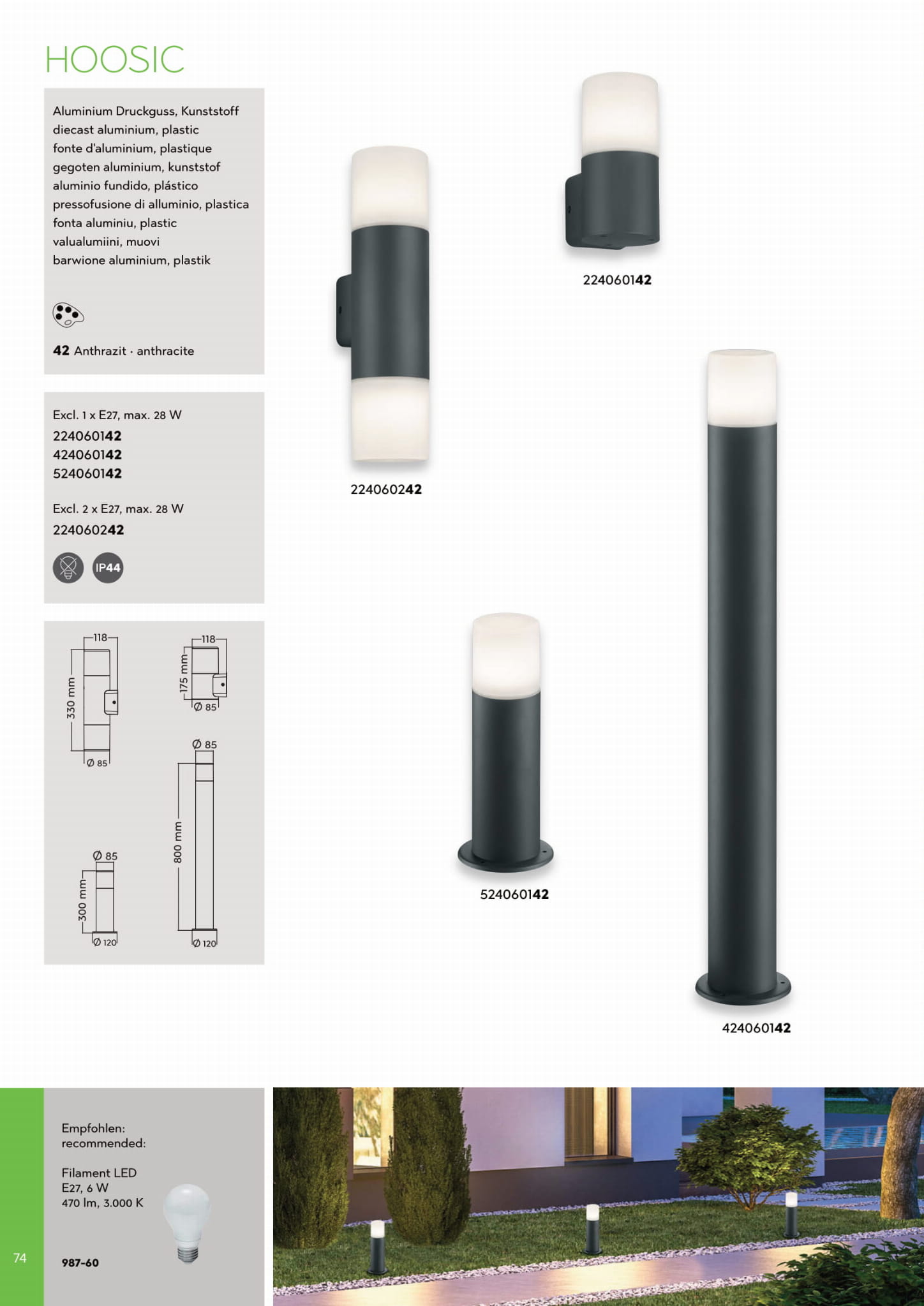 HOOSIC 424060142 lampa stojąca zewnętrzna 80cm antracyt klosz mleczny 1xE27 IP44
