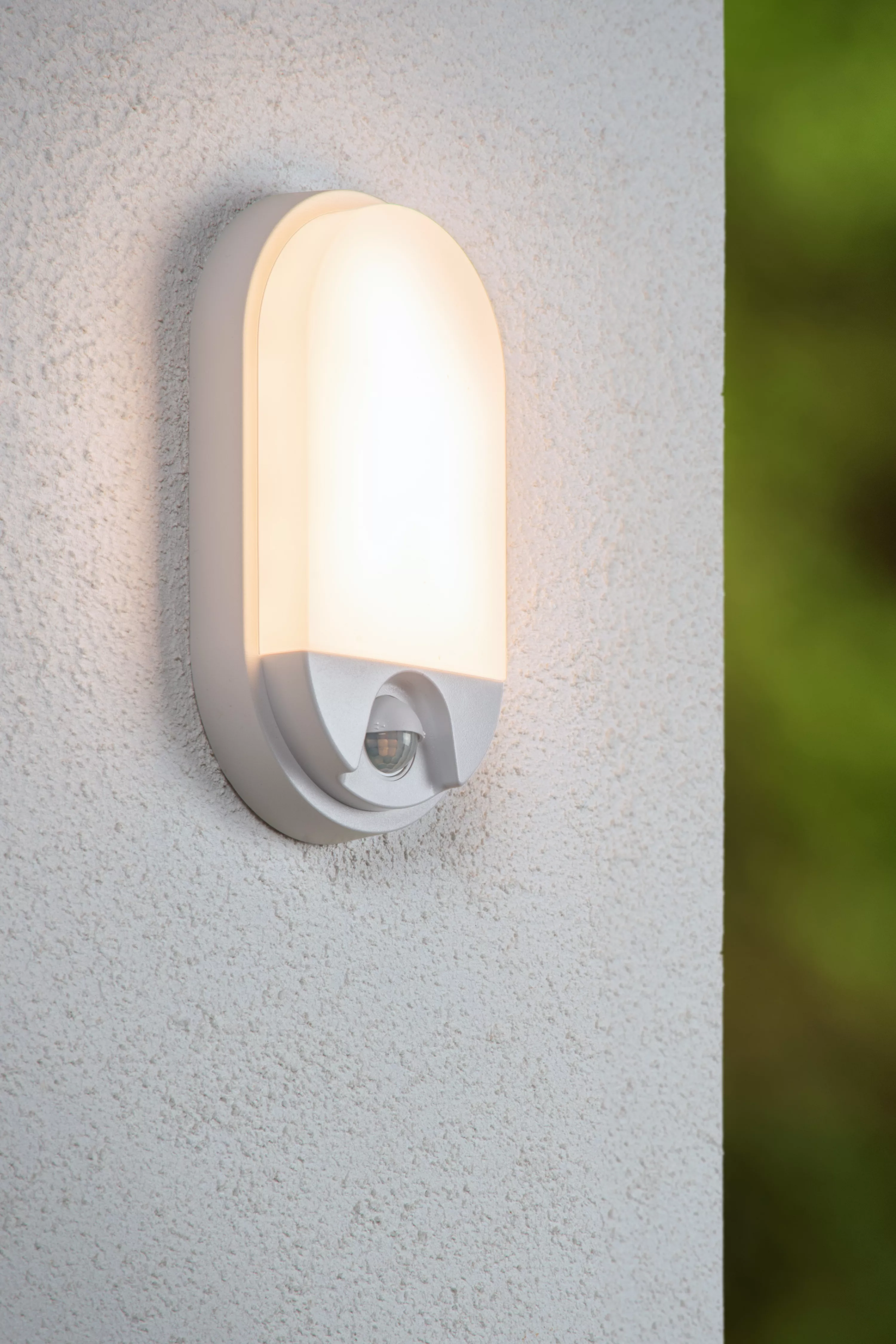HUPS kinkiet elewacyjny owalny biały IP54 LED 10W 3000K z czujnikiem ruchu LUCIDE 22864/10/31