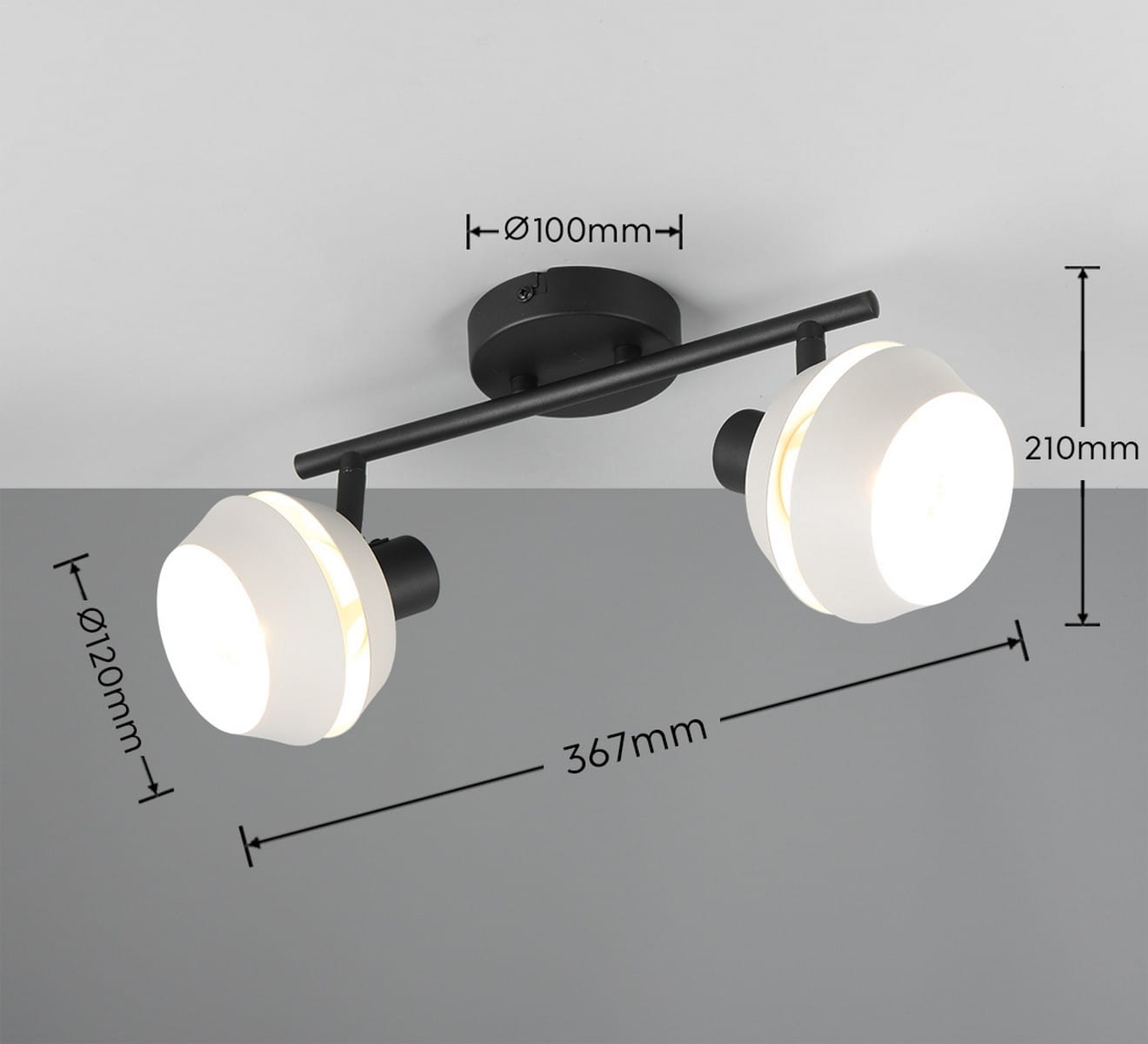 ISLA R86362076 listwa z jasnoszarymi kloszami 2xE14