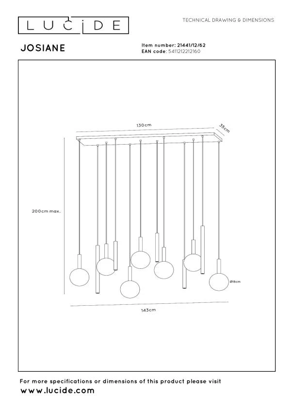 JOSIANE 21441/12/62 lampa wisząca tuby + kule bursztynowe 5xMR11 GU10 + 7xG9