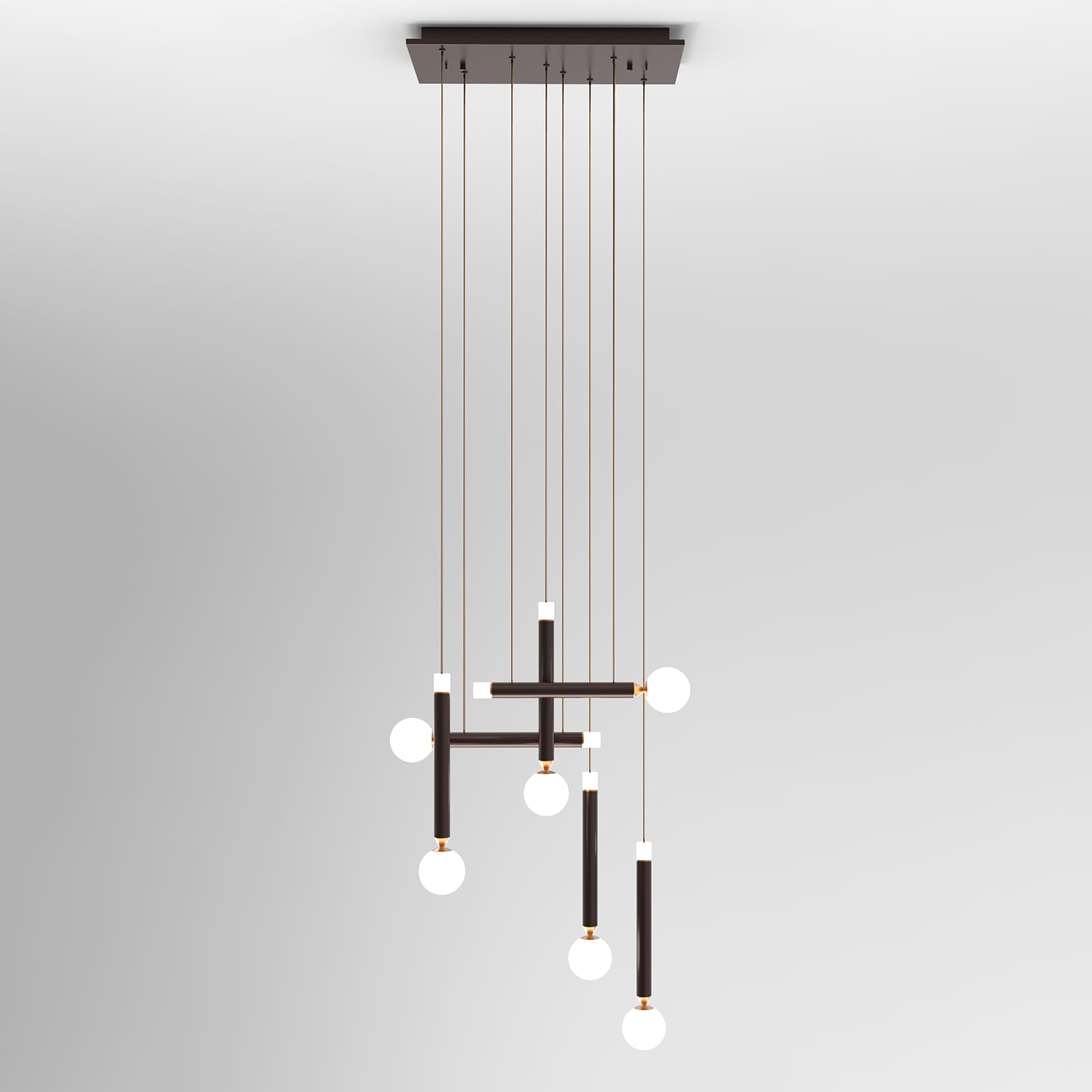 LAON lampa wisząca kaskada brązowa ze złotymi dodatkami klosz kula i cylinder LED 36W 3000K PND-2018109-6