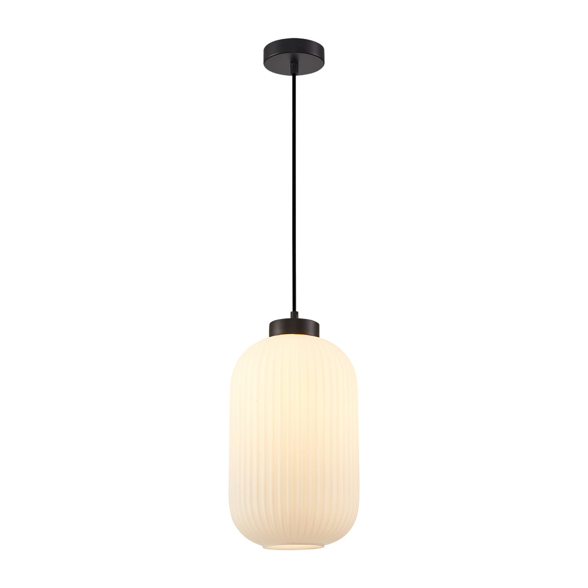 Lindo PND-52636-1-BK lampa wisząca czarna klosz biały ryflowany owalny 1xE27