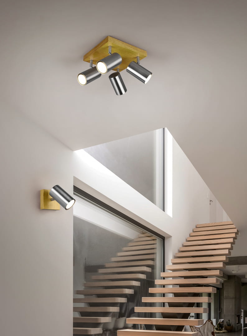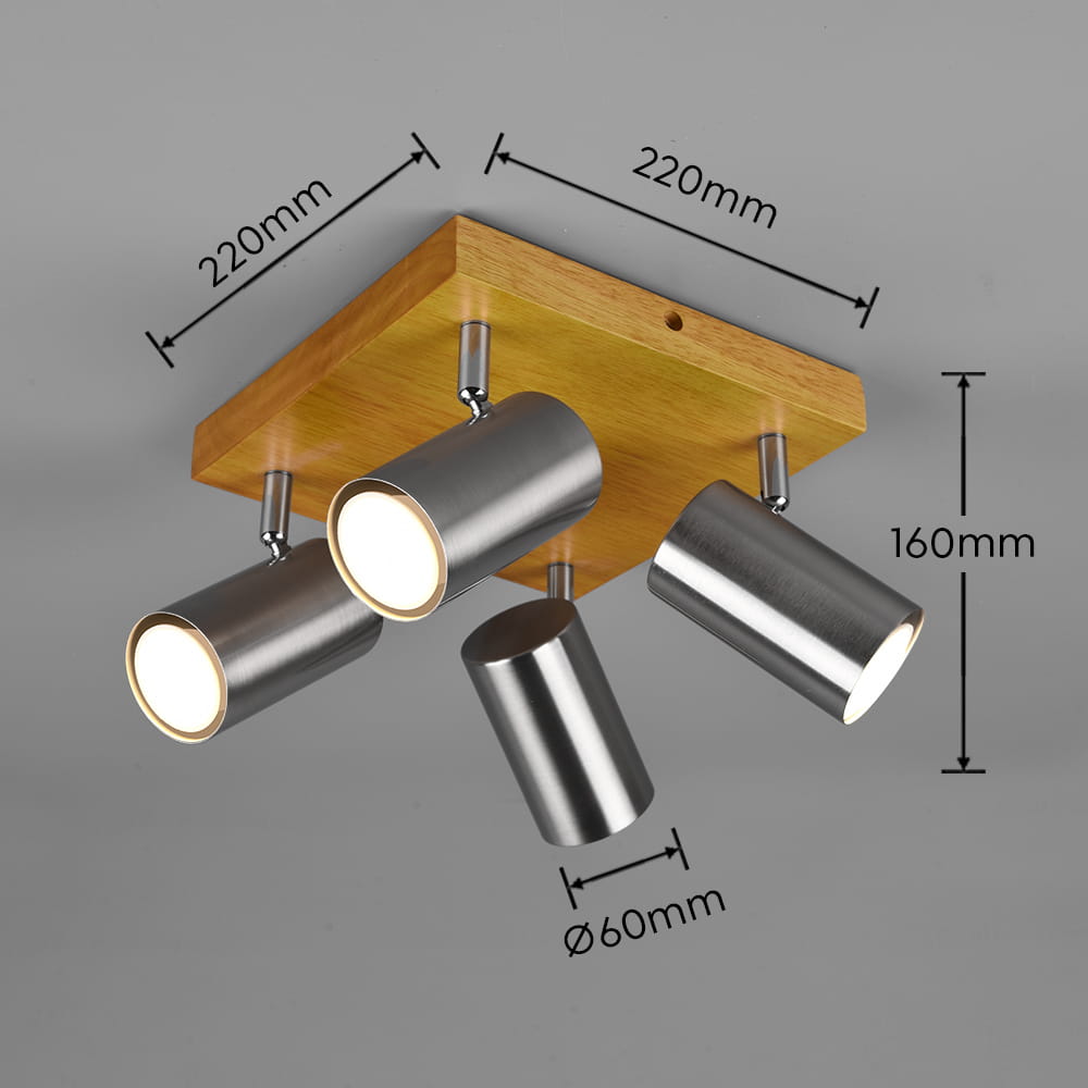 MARLEY 812400407 lampa sufitowa drewniana z regulowanymi tubkami nikiel mat 4xGU10