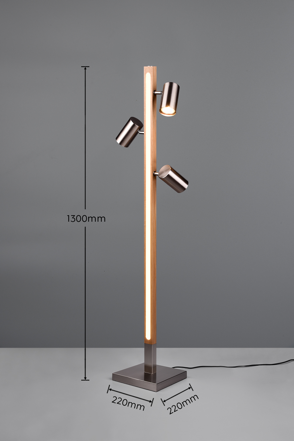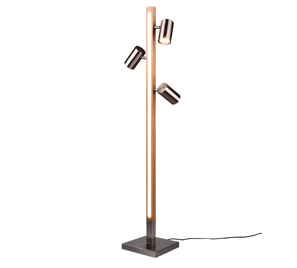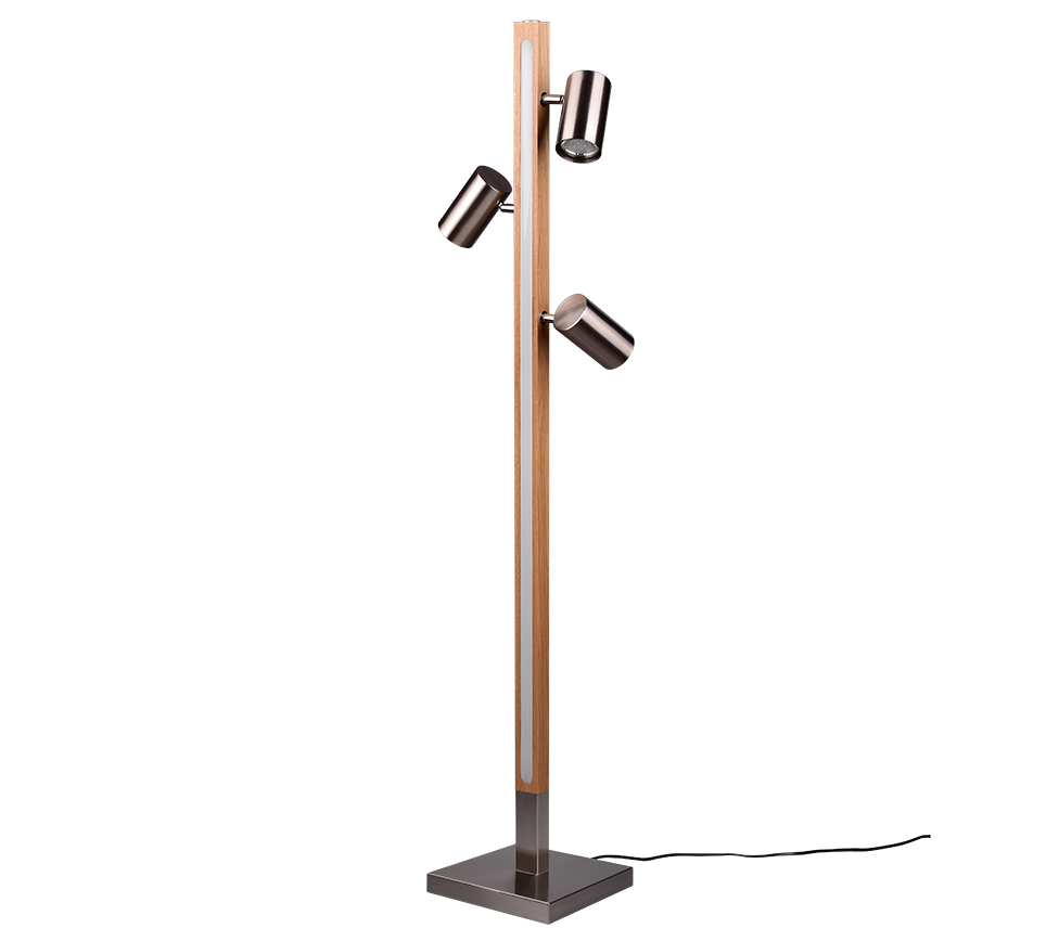 MARLEY lampa stojąca z drewnianą belką LED 20W 3000K i regulowanymi tubami nikiel mat 3xGU10 TRIO 412510407