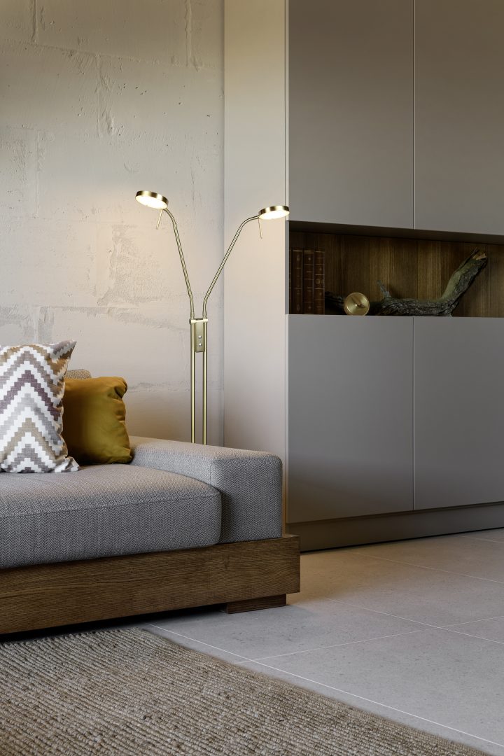 MONZA lampa stojąca złoty mat LED 2x12W CCT ściemnianie dotykowe TRIO 423310208