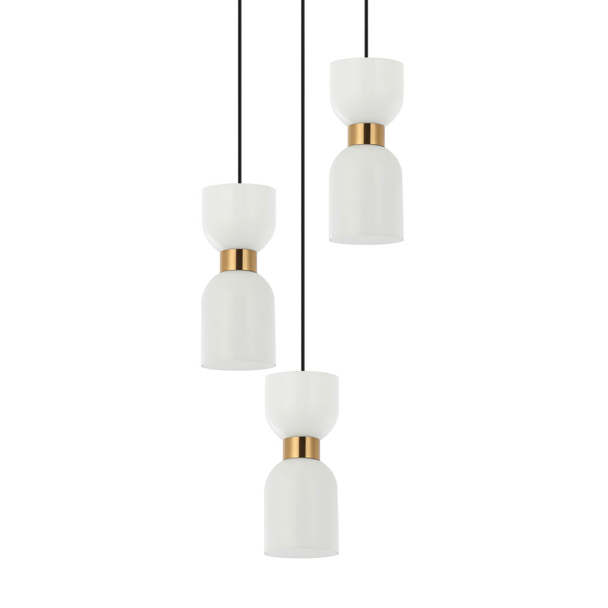 - Materiałowe wykończenie: Klosze z białego szkła i elegancka konstrukcja metalowa zapewniają trwałość i wizualną atrakcyjność w długim czasie użytkowania.