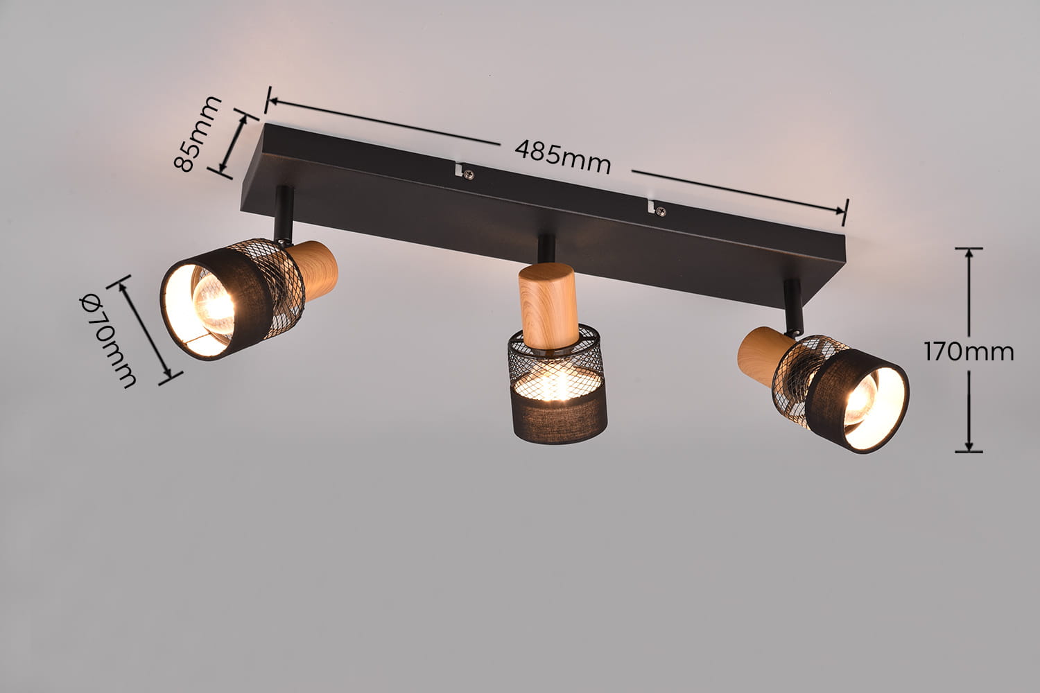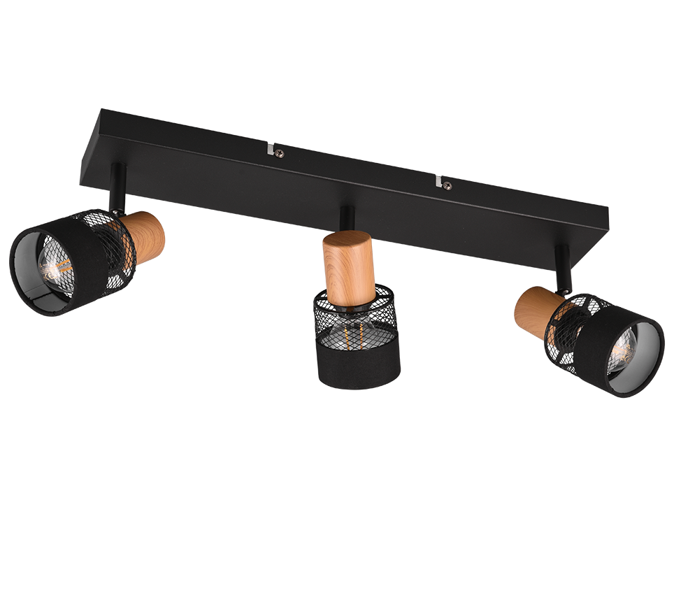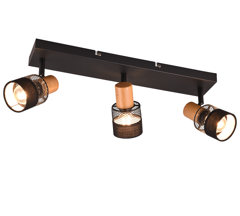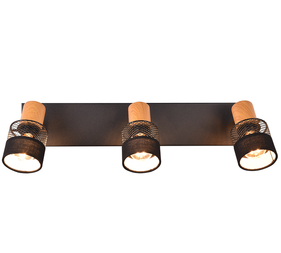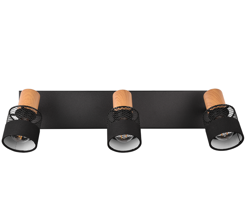 NANDINI 811700332 czarny lampa z drewnem abażur metalowa siatka i tkanina 3xE14