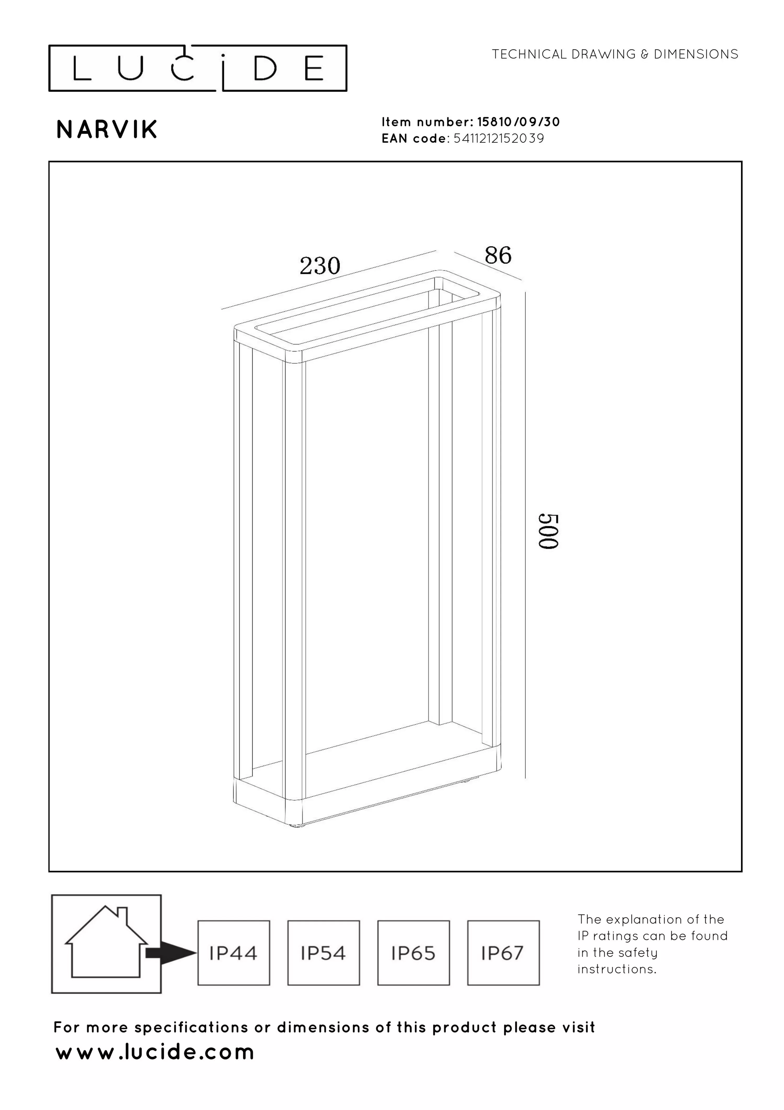 NARVIK lampa stojąca ogrodowa czarna ramka IP65 LED 9,2W 3000K LUCIDE 15810/09/30
