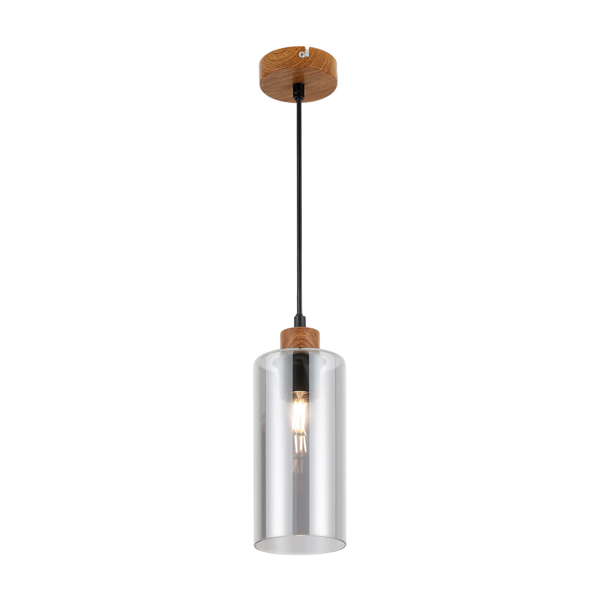NASTER lampa wisząca imitacja drewna klosz szkło dymione 1xE27 PND-23051-1-WO