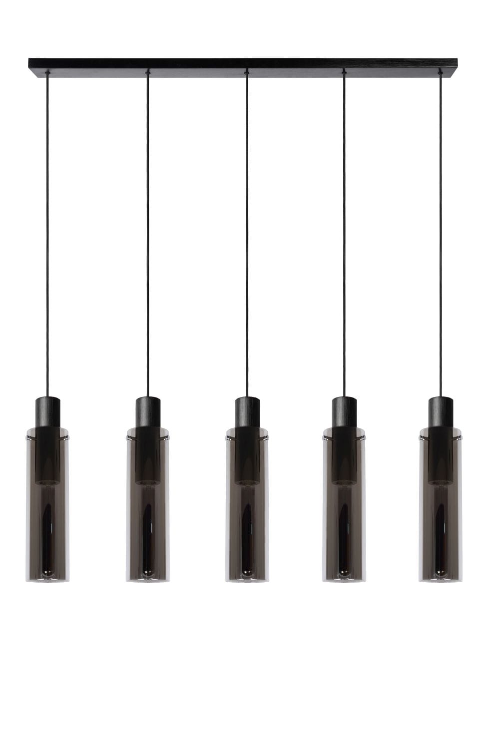 ORLANDO lampa wisząca szklane tuby dymione 5xE27 wykończenie czarne zwisy na listwie