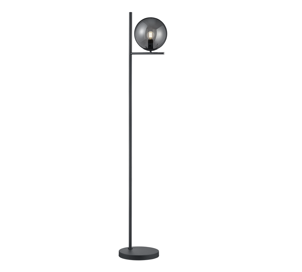 PURE 402000142 lampa stojąca czarna z dymionym szklanym kloszem fi 20cm 1xE14