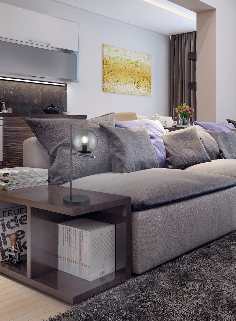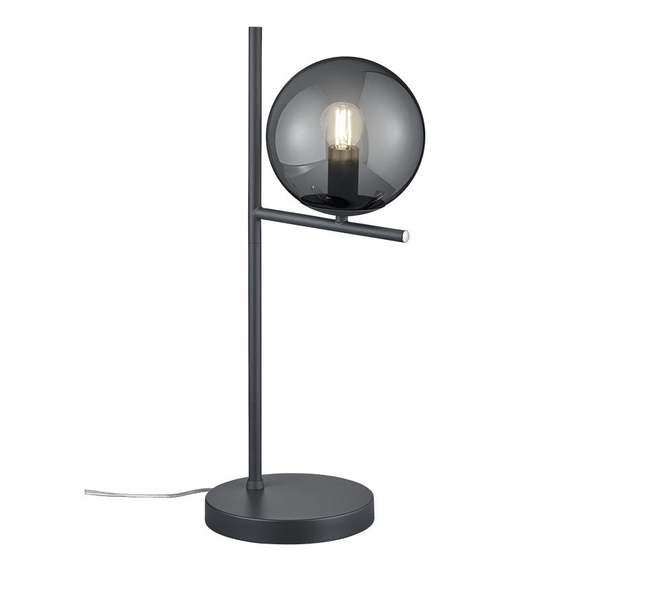 PURE 502000142 lampa stołowa czarna z dymionym szklanym kloszem fi 16cm 1xE14