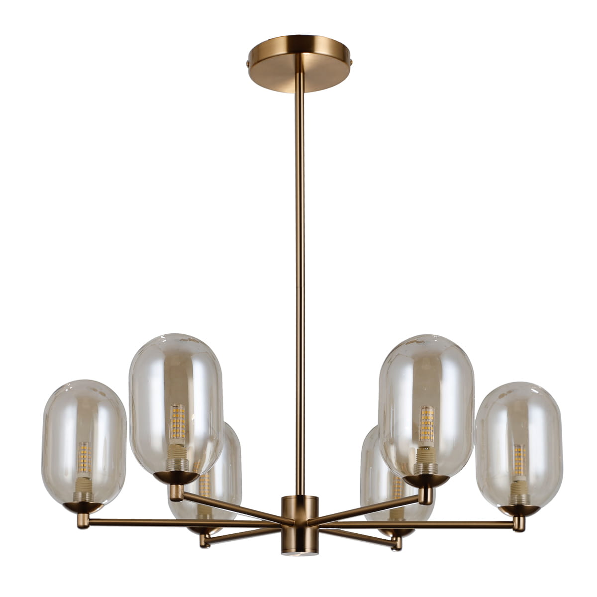 Perano PND-4215-6-HBR żyrandol patynowy z owalnymi kloszami bursztynowymi 5xG9