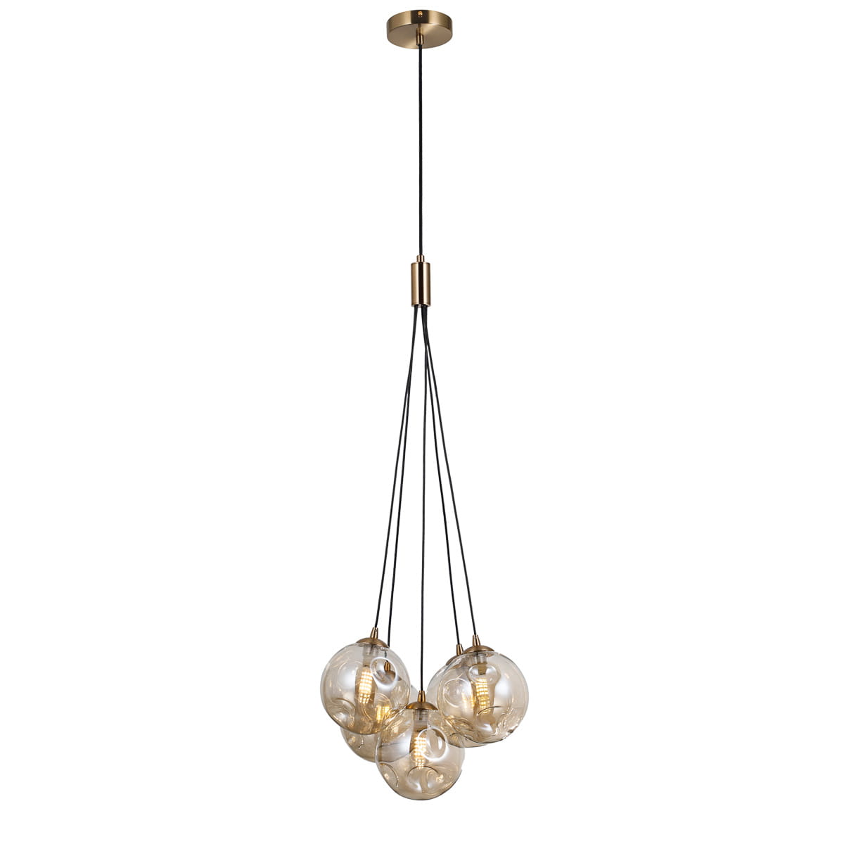 Perlos PND-54456-5-HB-AMB lampa wisząca kule amber wgniecione kiść 5xG9 mosiądz miodowy