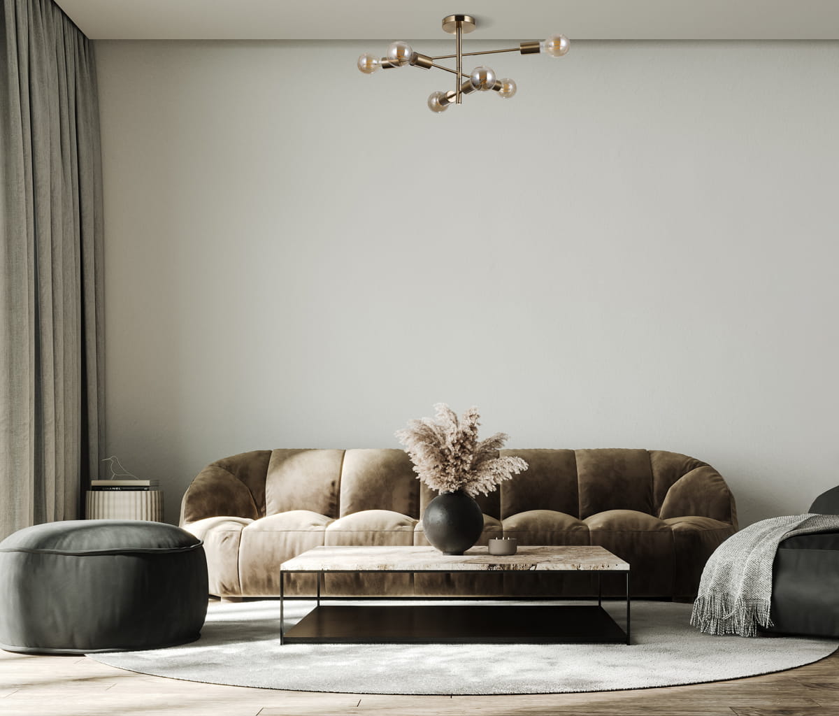 Nowoczesna lampa sufitowa w stylu loftowym dodaje wnętrzu charakteru i ciepła, idealnie pasuje do salonu, jadalni czy garażu. Jej minimalistyczna struktura i elegancki kolor mosiądzu miodowego tworzą atmosferę nowoczesnej elegancji, podkreślając funkcjonalność i estetykę.