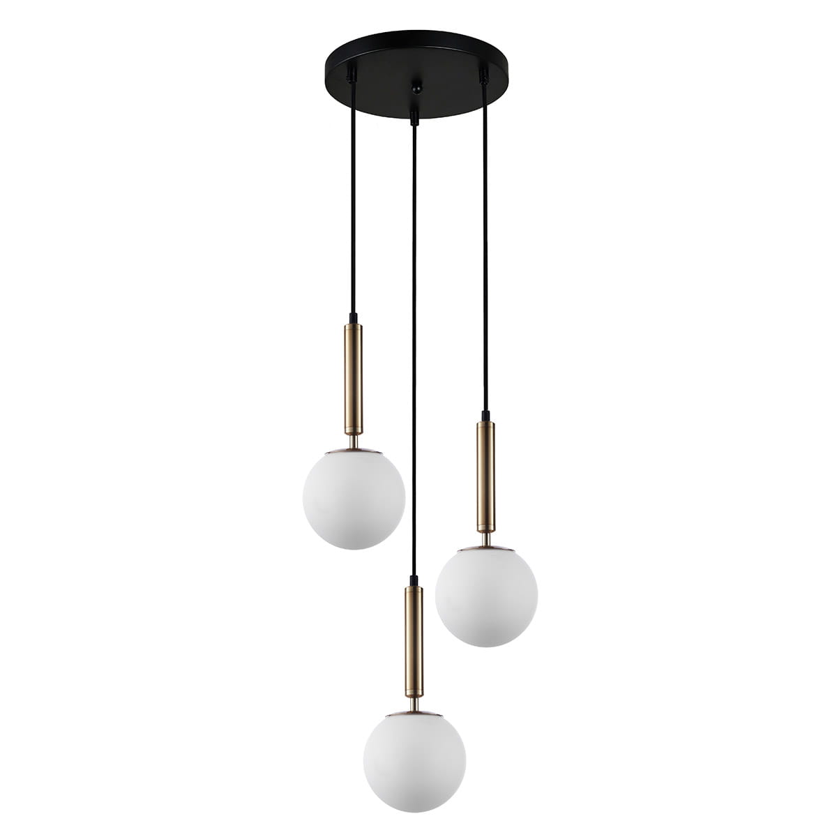 RAVENA lampa wisząca czarno-złota kaskada klosze białe kule 3xE27 PND-2324-3A GD+OPAL