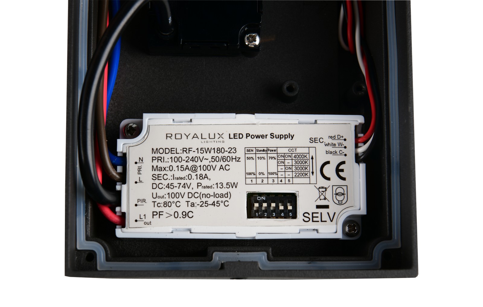 DIP-Switch przełącznik zmiany barwy światła na obudowie.