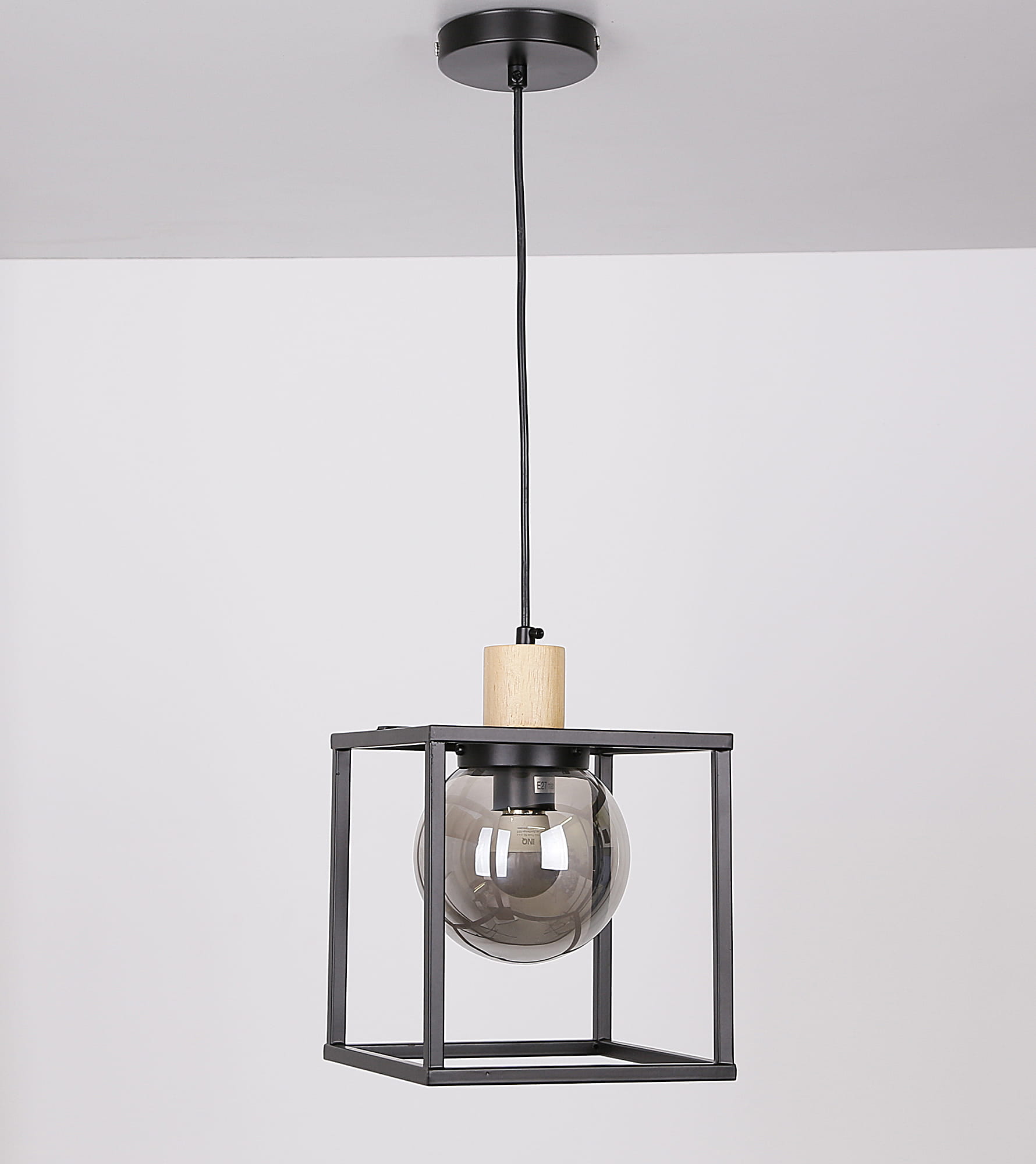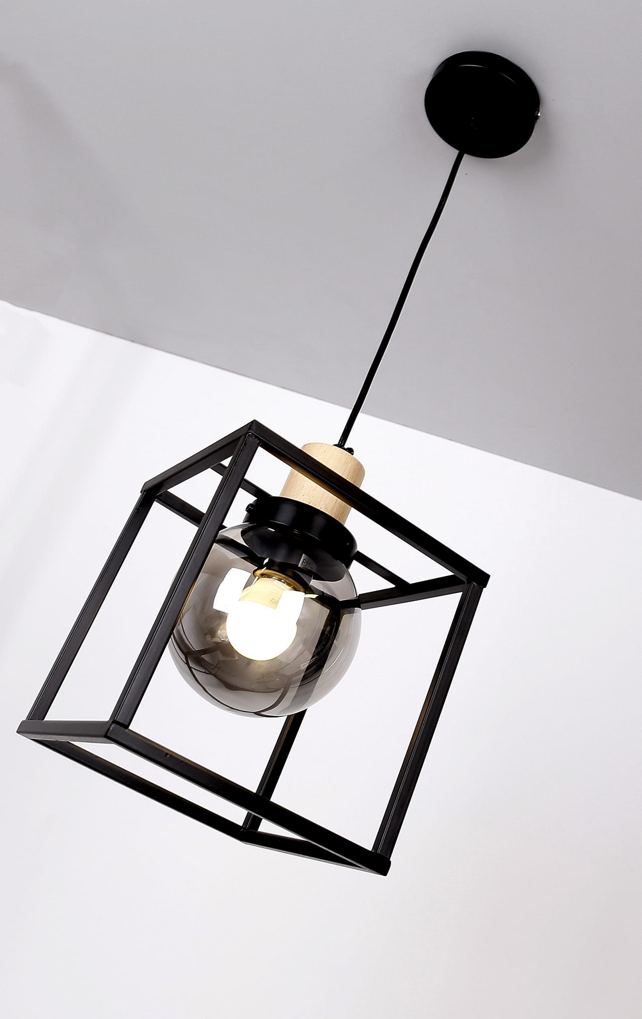 Retro 2 lampa wisząca czarny 1x40w e27 klosz dymiony