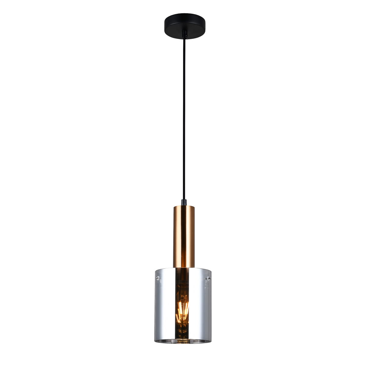 SARDO lampa wisząca czarna z mosiądzem klosz dymiony 1xE27 PND-5581-1-BRO+SG