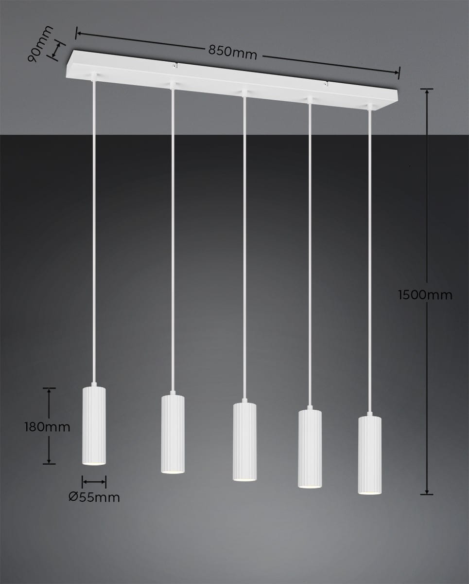SOKA 367700531 lampa wisząca białe ryflowane tuby 5xGU10