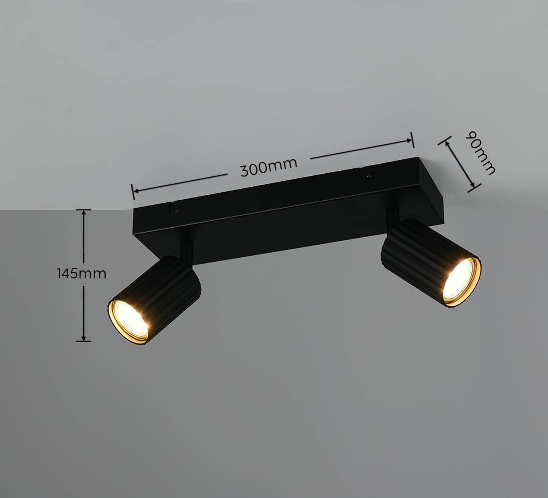 SOKA 867700232 listwa ze spotami czarne ryflowane tuby 2xGU10