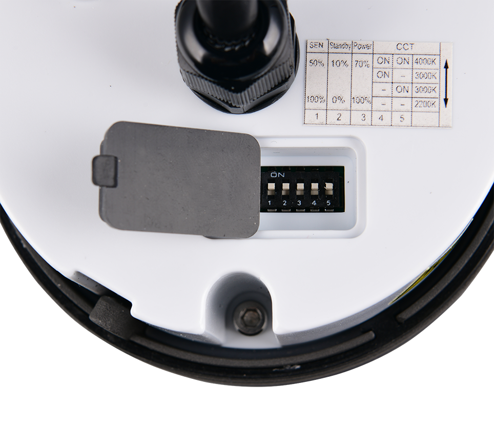 DIP-Switch przełącznik zmiany barwy światła na obudowie.