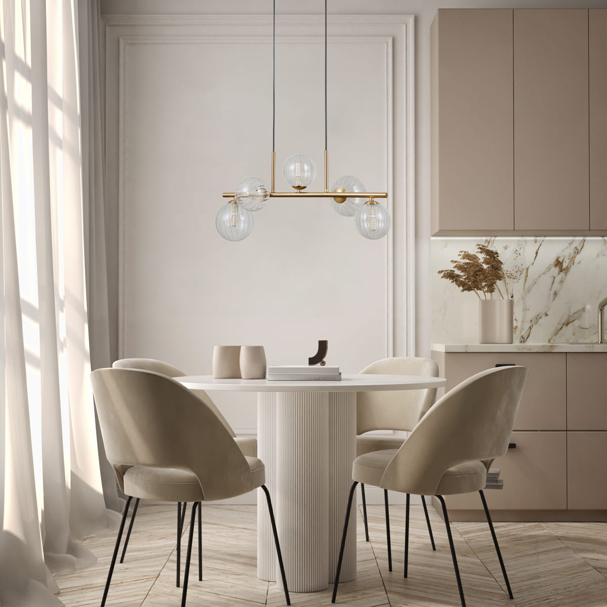 TOLEDO lampa wisząca złota belka klosze przeźroczyste 5xG9 PND-40717-5-HBR