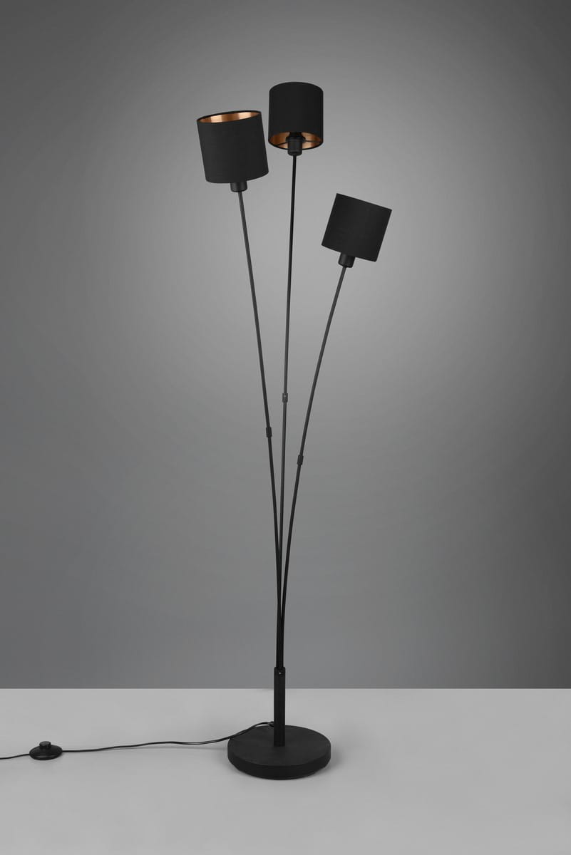 TOMMY lampa podłogowa czarny mat abażury czarno-złote 3xE14 wyłącznik nożny
