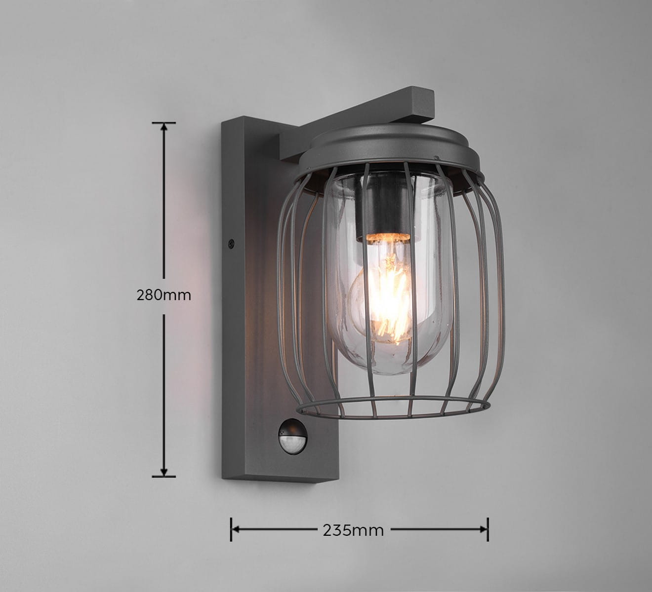 TUELA 210869142 kinkiet zewnętrzny z czujnikiem ruchu klosz szklany wykończenie antracyt 1xE27 IP44