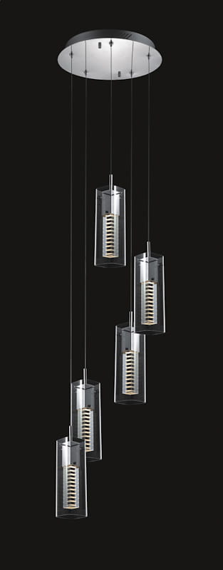 VERIZON lampa wisząca kaskada chrom klosze przeźroczyste z piaskowanymi płytkami 5xMR11 MD109003-5B