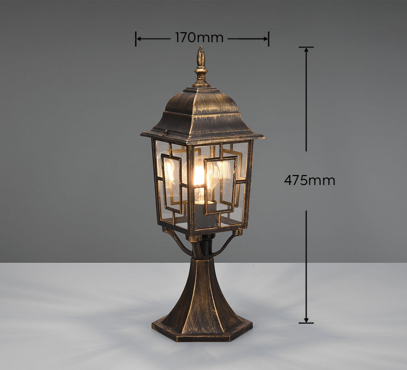 VOLTURNO 505960128 klasyczny słupek zewnętrzny 47cm rdzawy przecierany złotym 1xE27 IP23