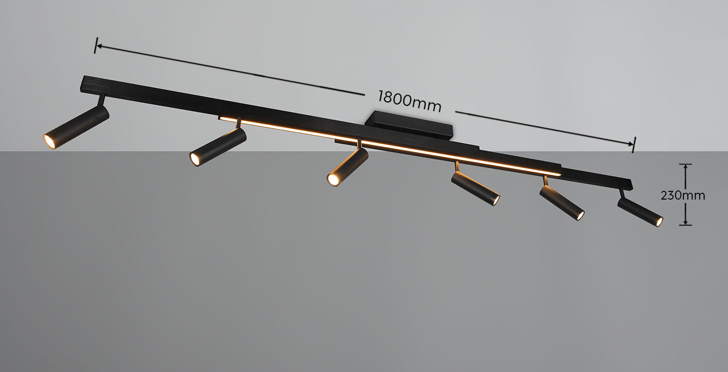 ZENO 648310732 rozsuwana lampa LED 6x5,5W + 18W 2700-6500K czarna sterowanie pilotem
